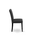 Las sillas están elaboradas con madera sólida y reforzadas con tornillos para mayor estabilidad. El asiento y respaldo están acolchados con espuma de alta densidad y recubiertos en tela