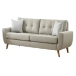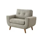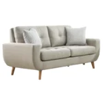 Diseño con un estilo vintage moderno con cojines con botones en el respaldo que dan comodidad, con su espuma de alta densidad y suavidad. Incluye patas vintage de madera con acabados de madera natural. La estructura es de madera reforzada en su interior.
