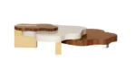 El diseño de la mesa incorpora múltiples niveles y espacios de almacenamiento, lo que la hace ideal para organizar objetos decorativos, libros, revistas, dispositivos electrónicos o incluso una laptop. La parte superior cuenta con una superficie amplia y firme, perfecta para colocar bebidas, floreros y otros elementos decorativos.