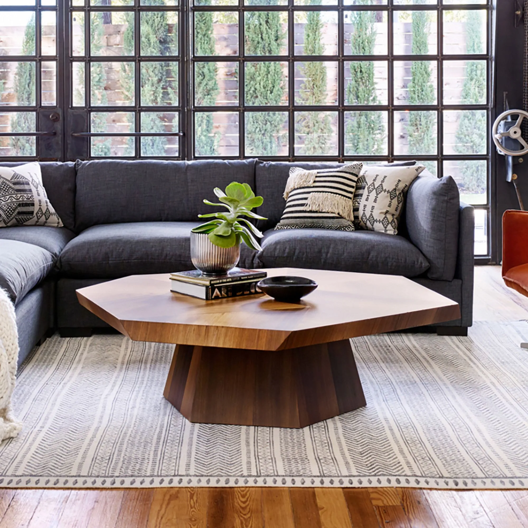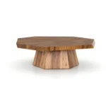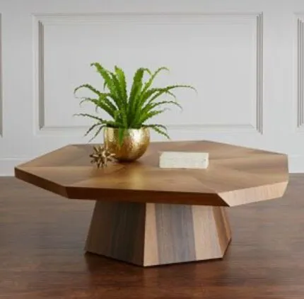 Esta mesa de centro es una pieza de diseño elegante y sofisticado que aporta un estilo distintivo a cualquier espacio. Su forma geométrica octagonal la hace destacar, combinando estética y funcionalidad en una sola estructura. La superficie amplia permite colocar diversos objetos decorativos, libros o accesorios sin comprometer la comodidad de uso.
