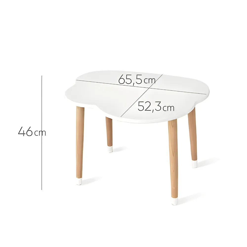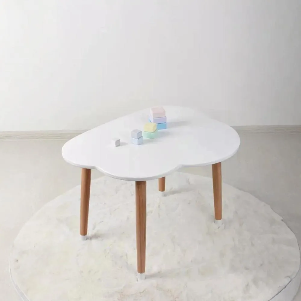 Esta mesa infantil presenta un diseño encantador inspirado en la silueta de nube lo que la convierte en un elemento divertido y funcional para el espacio de los niños. Su estructura cuenta con una superficie amplia y bordes redondeados, ofreciendo seguridad y comodidad durante su uso. Las patas son resistentes y ligeramente inclinadas, brindando estabilidad y un toque moderno al diseño.