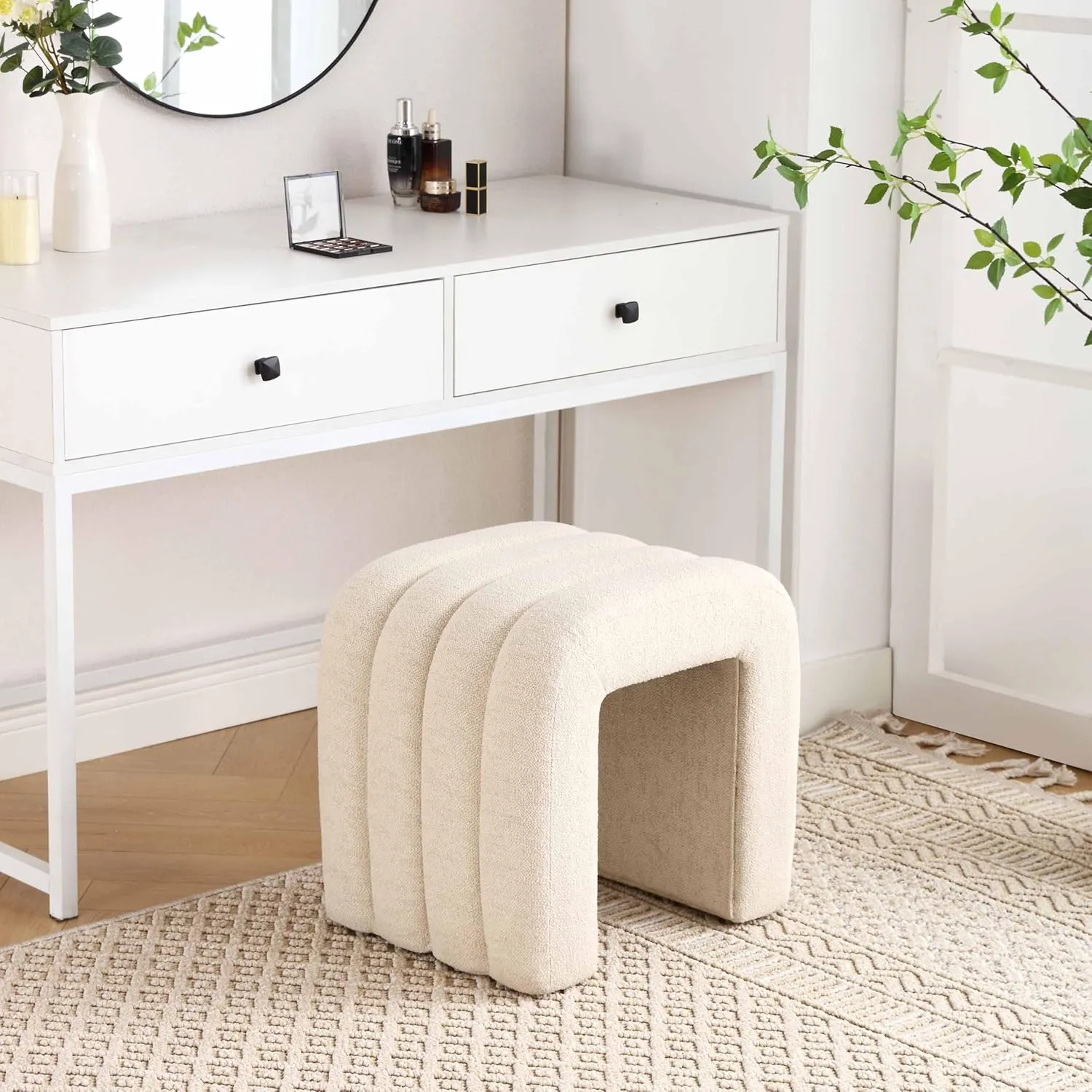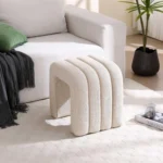Comodidad acogedora: Tapizado en tela sherpa suave de color blanco roto para una sensación de felpa y acogedora.