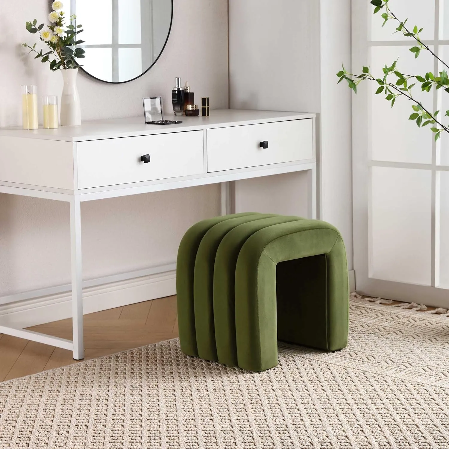 Versátil: taburete otomano sirve como un asiento adicional o reposapiés para sala de estar, dormitorio o entrada.