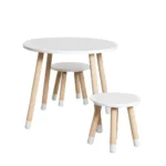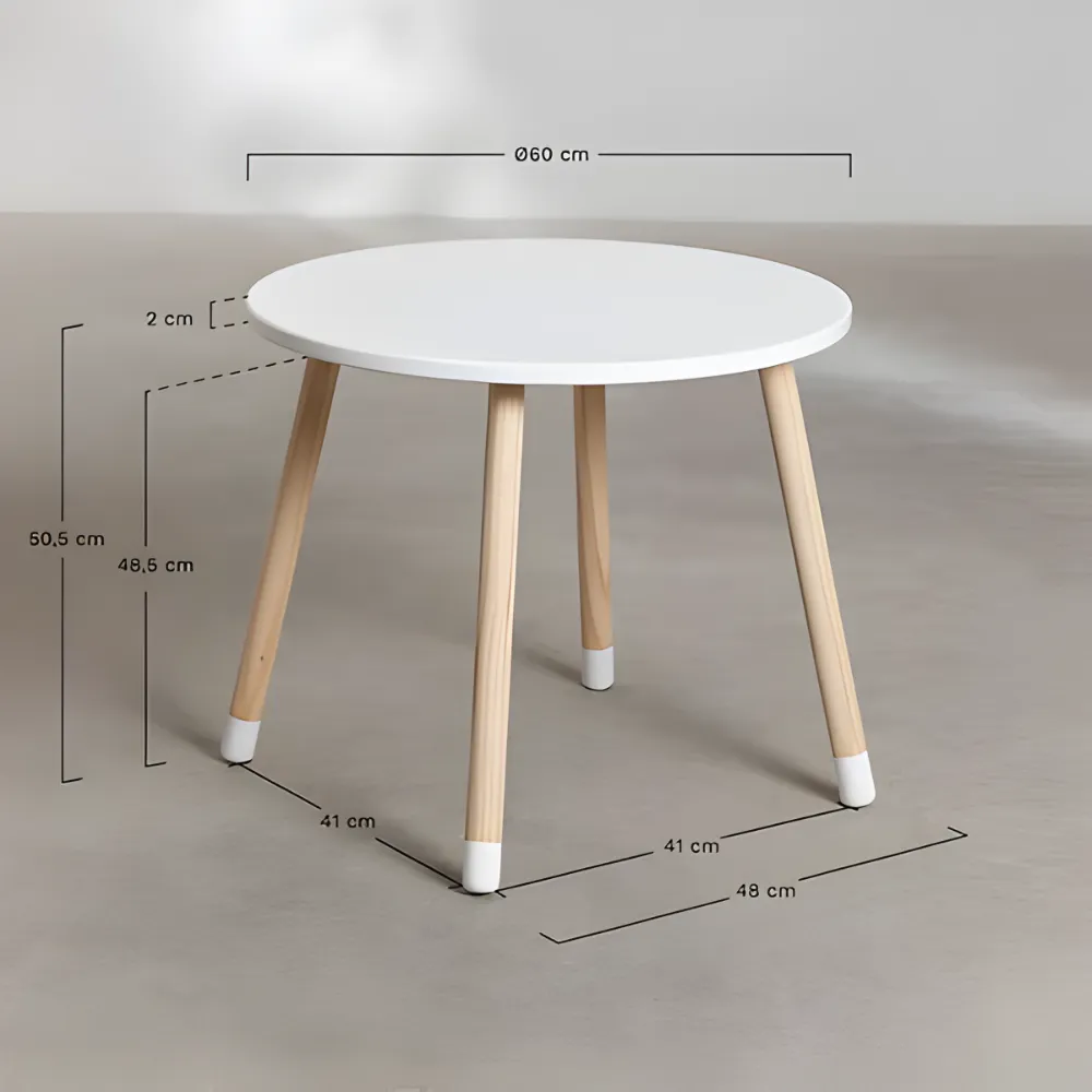 El conjunto es ideal para crear un espacio de juego, dibujo o merienda en la habitación de un niño. Su diseño versátil y sus colores neutros se adaptan a cualquier estilo de decoración infantil.