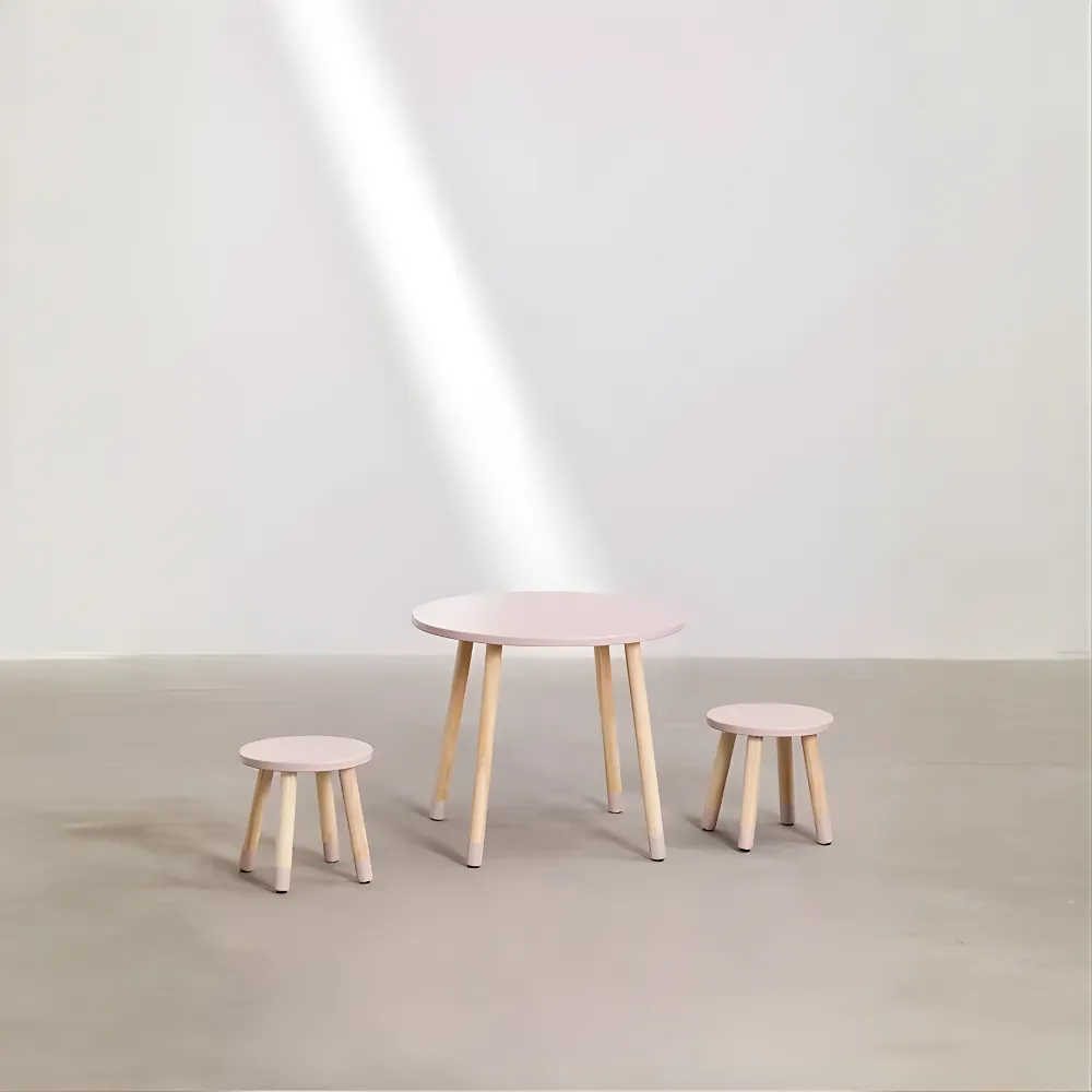 El conjunto es ideal para crear un espacio de juego, dibujo o merienda en la habitación de un niño. Su diseño versátil y sus colores neutros se adaptan a cualquier estilo de decoración infantil.