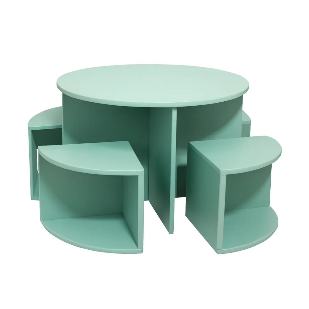 Este escritorio de estudio infantil combina funcionalidad y diseño moderno, creando un espacio ideal para que los niños desarrollen su creatividad y concentración. Su estructura circular favorece la interacción y el aprendizaje colaborativo, mientras que las sillas encajan perfectamente debajo de la mesa, optimizando el espacio. Cuenta con prácticos compartimentos de almacenamiento en la base, ideales para guardar libros, materiales escolares y juguetes. Su diseño ergonómico proporciona comodidad y seguridad, adaptándose a las necesidades de los más pequeños. Es perfecto para habitaciones infantiles, salas de juegos o áreas de estudio, aportando un ambiente ordenado y acogedor que fomenta el desarrollo y la organización.