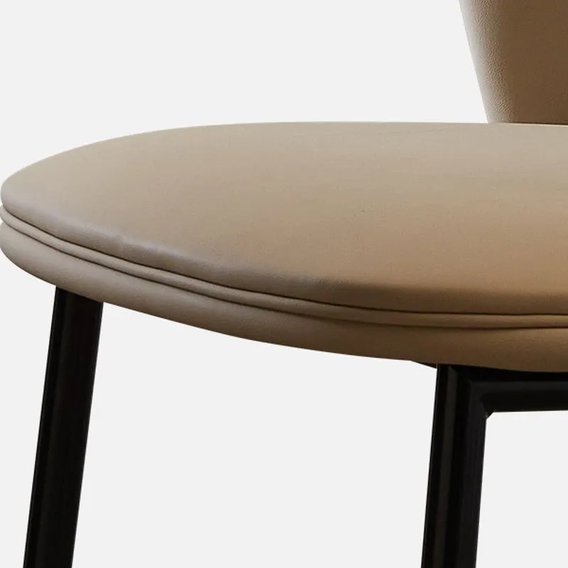 Esta silla de comedor presenta un diseño elegante y moderno, ideal para complementar diversos estilos de decoración. Su estructura está compuesta por cuatro delgadas patas metálicas en color negro, que proporcionan estabilidad y un toque contemporáneo.