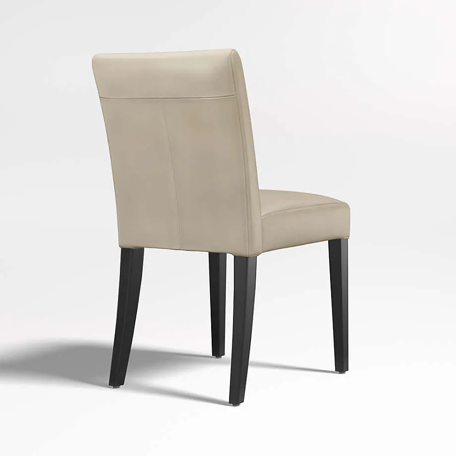 El cuero suave en un rico tono marrón chocolate cubre nuestra elegante y contemporánea silla auxiliar Lowe para convertirla en la compañera perfecta para una mesa de comedor o como una cómoda silla ocasional. Las opciones de silla auxiliar, sillón, taburete y banco Lowe en una gama de colores coordinados permiten mezclar y combinar para lograr un estilo personalizado. Refinada pero cómoda con un asiento generoso, el asiento y respaldo acolchados y ajustados de la silla de comedor de cuero Lowe, terminados con costuras dobles, están perfectamente proporcionados con las delgadas patas teñidas en ébano del marco. La silla auxiliar de cuero chocolate Lowe es exclusiva de Crate and Barrel.