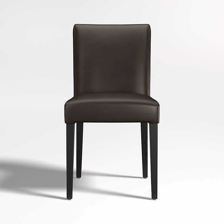 El cuero suave en un rico tono marrón chocolate cubre nuestra elegante y contemporánea silla auxiliar Lowe para convertirla en la compañera perfecta para una mesa de comedor o como una cómoda silla ocasional. Las opciones de silla auxiliar, sillón, taburete y banco Lowe en una gama de colores coordinados permiten mezclar y combinar para lograr un estilo personalizado. Refinada pero cómoda con un asiento generoso, el asiento y respaldo acolchados y ajustados de la silla de comedor de cuero Lowe, terminados con costuras dobles, están perfectamente proporcionados con las delgadas patas teñidas en ébano del marco. La silla auxiliar de cuero chocolate Lowe es exclusiva de Crate and Barrel.