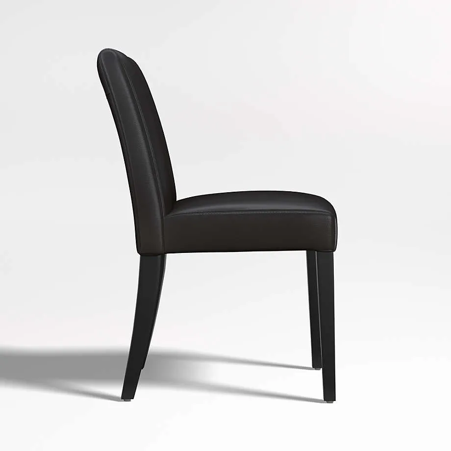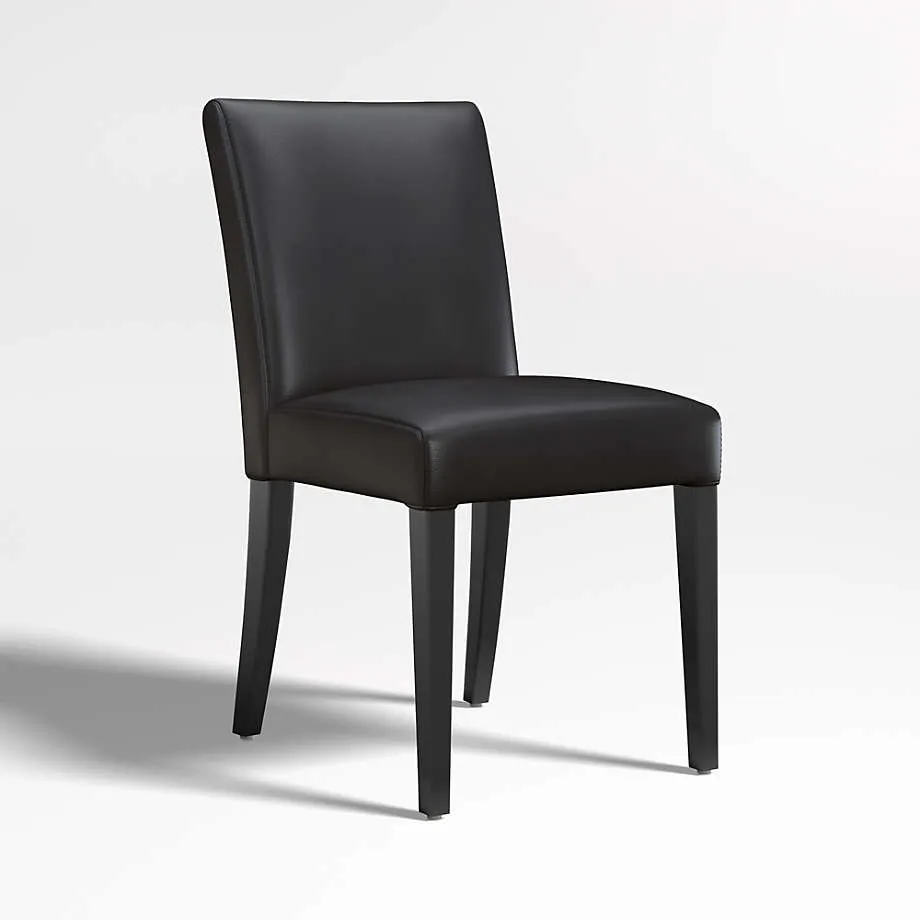 El cuero suave en un rico tono marrón chocolate cubre nuestra elegante y contemporánea silla auxiliar Lowe para convertirla en la compañera perfecta para una mesa de comedor o como una cómoda silla ocasional. Las opciones de silla auxiliar, sillón, taburete y banco Lowe en una gama de colores coordinados permiten mezclar y combinar para lograr un estilo personalizado. Refinada pero cómoda con un asiento generoso, el asiento y respaldo acolchados y ajustados de la silla de comedor de cuero Lowe, terminados con costuras dobles, están perfectamente proporcionados con las delgadas patas teñidas en ébano del marco. La silla auxiliar de cuero chocolate Lowe es exclusiva de Crate and Barrel.