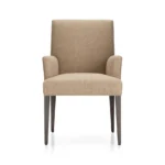 Clásica, con proporciones refinadas y formalidad informal, la silla de comedor con brazos Miles ofrece una comodidad sin límites con un asiento y un respaldo suaves y ajustados, tapizados con un tejido de fácil cuidado. Las delgadas y cálidas patas de madera dura gris de la silla de comedor tapizada se estrechan elegantemente hasta el suelo. La silla de comedor con brazos Miles es exclusiva de Crate and Barrel.