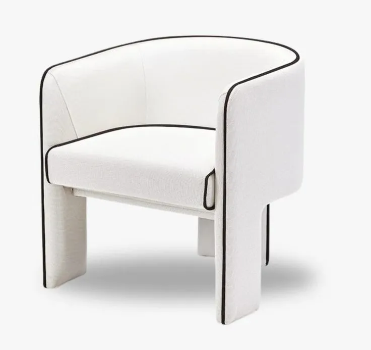 El diseño de este sillón presenta líneas curvas que le otorgan un aspecto moderno y refinado, adaptándose perfectamente a diversos estilos de decoración. Los detalles decorativos en los bordes resaltan su estética, haciendo que sea una pieza llamativa y versátil, ideal para salas de estar, oficina.