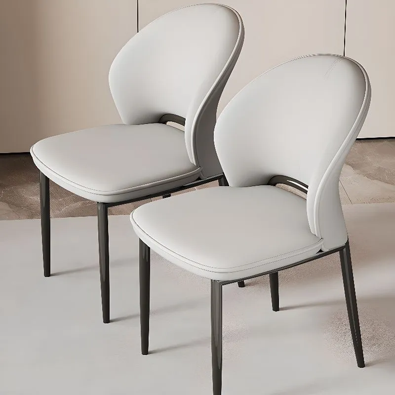 Esta silla moderna tiene un diseño elegante y sofisticado, ideal para espacios contemporáneos. Su estructura está compuesta por patas delgadas y estilizadas en un acabado metálico oscuro, lo que le otorga estabilidad y un toque de lujo. El asiento y el respaldo están acolchados y tapizados en un tono claro, posiblemente gris o blanco, proporcionando comodidad y un contraste refinado con la base.