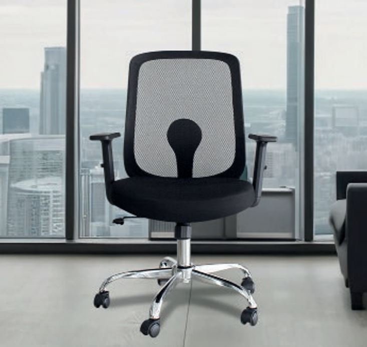 Esta silla de oficina combina ergonomía y estilo para ofrecer confort durante largas jornadas laborales. Su respaldo curvado brinda un adecuado soporte lumbar, favoreciendo una postura saludable. Cuenta con descansabrazos resistentes que mejoran la comodidad del usuario y una base giratoria con ruedas, lo que permite un fácil desplazamiento y movilidad en el espacio de trabajo. El sistema de ajuste de altura posibilita la adaptación a distintas necesidades y escritorios. Su estructura metálica robusta garantiza estabilidad y durabilidad. Ideal para oficinas, escritorios en casa o salas de conferencias, esta silla es una excelente opción para quienes buscan funcionalidad y diseño en su mobiliario de trabajo.