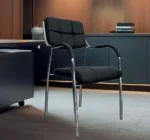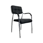 Esta silla tiene un diseño sencillo y moderno, ideal para oficinas, salas de espera o espacios de trabajo. Su asiento y respaldo acolchados están tapizados en material negro, proporcionando comodidad y soporte.