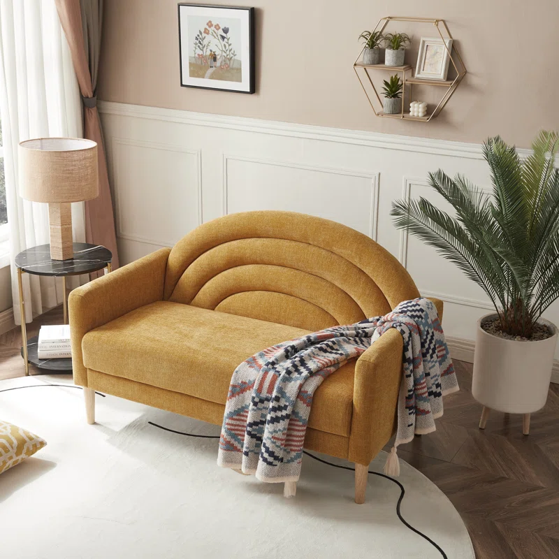 Este sofá es una pieza elegante y sofisticada, ideal para espacios modernos y minimalistas. Su diseño combina líneas curvas y una estética refinada, con un respaldo semicircular adornado con costuras en patrón de abanico, lo que le otorga un aire contemporáneo y elegante. Los brazos ligeramente inclinados y las patas de madera elevadas refuerzan su estilo liviano y acogedor, haciéndolo perfecto para salas de estar, estudios o incluso dormitorios. Está tapizado en una tela de poliéster color crema, lo que lo hace versátil y fácil de combinar con diversos estilos.