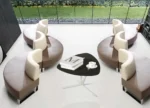 Este sofá modular circular, elaborado con meticulosa precisión, presenta un diseño sin costuras que fomenta la unidad y la cohesión. Su suave curvatura actúa como un punto focal cautivador y ofrece una alternativa refrescante a las disposiciones de muebles lineales tradicionales.