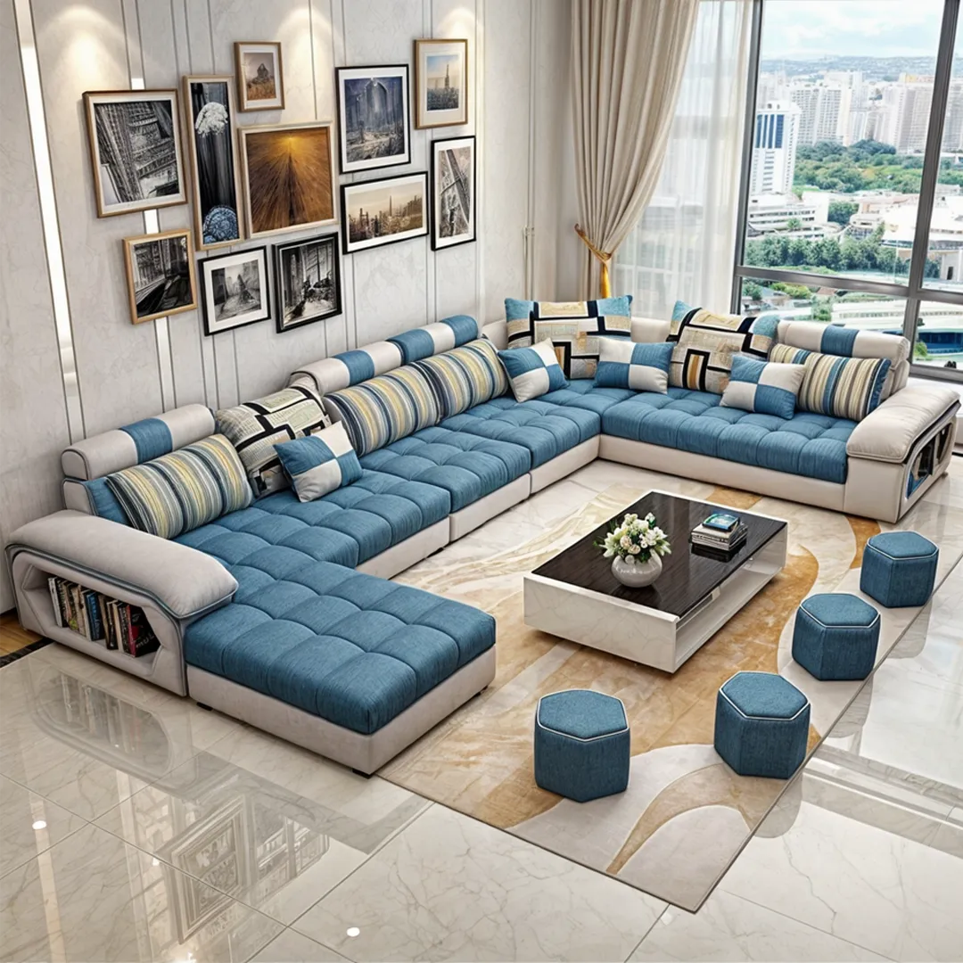 Sofá Modular Agrigento 6 piezas + Puff – Gris y Azul