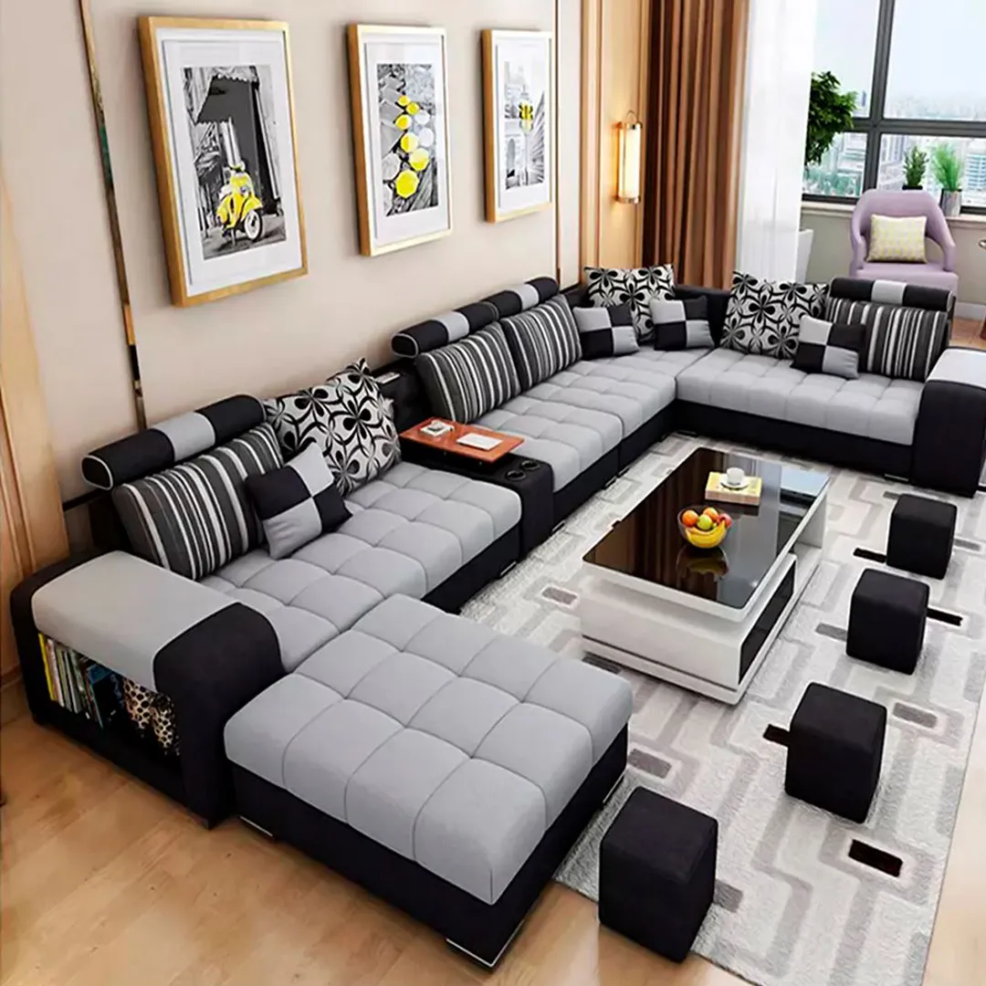 Sofá Modular Aquila 7 piezas + Puff - Negro y Gris