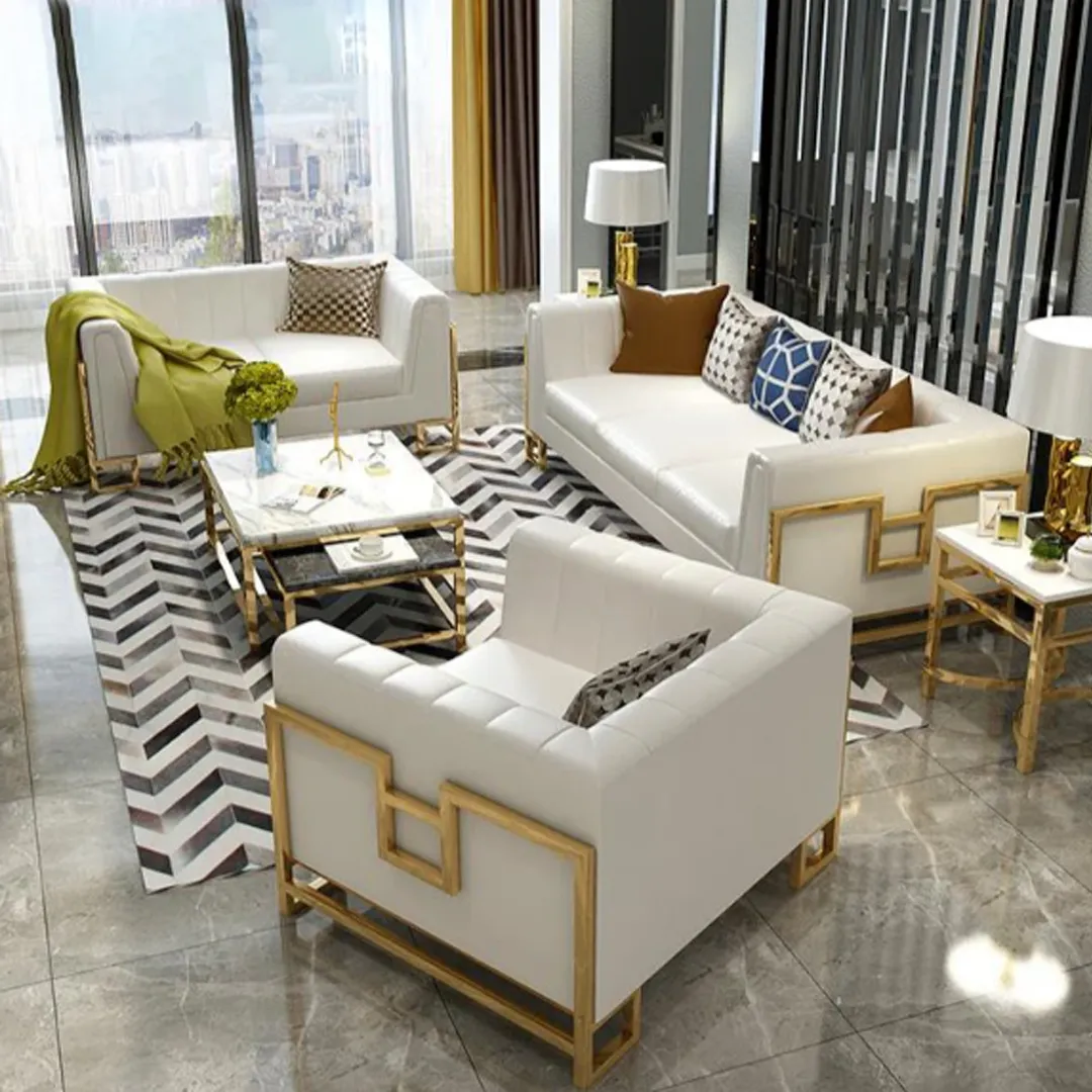 Sofá Modular Farat 3 +2 + 1 – Beige y Dorado