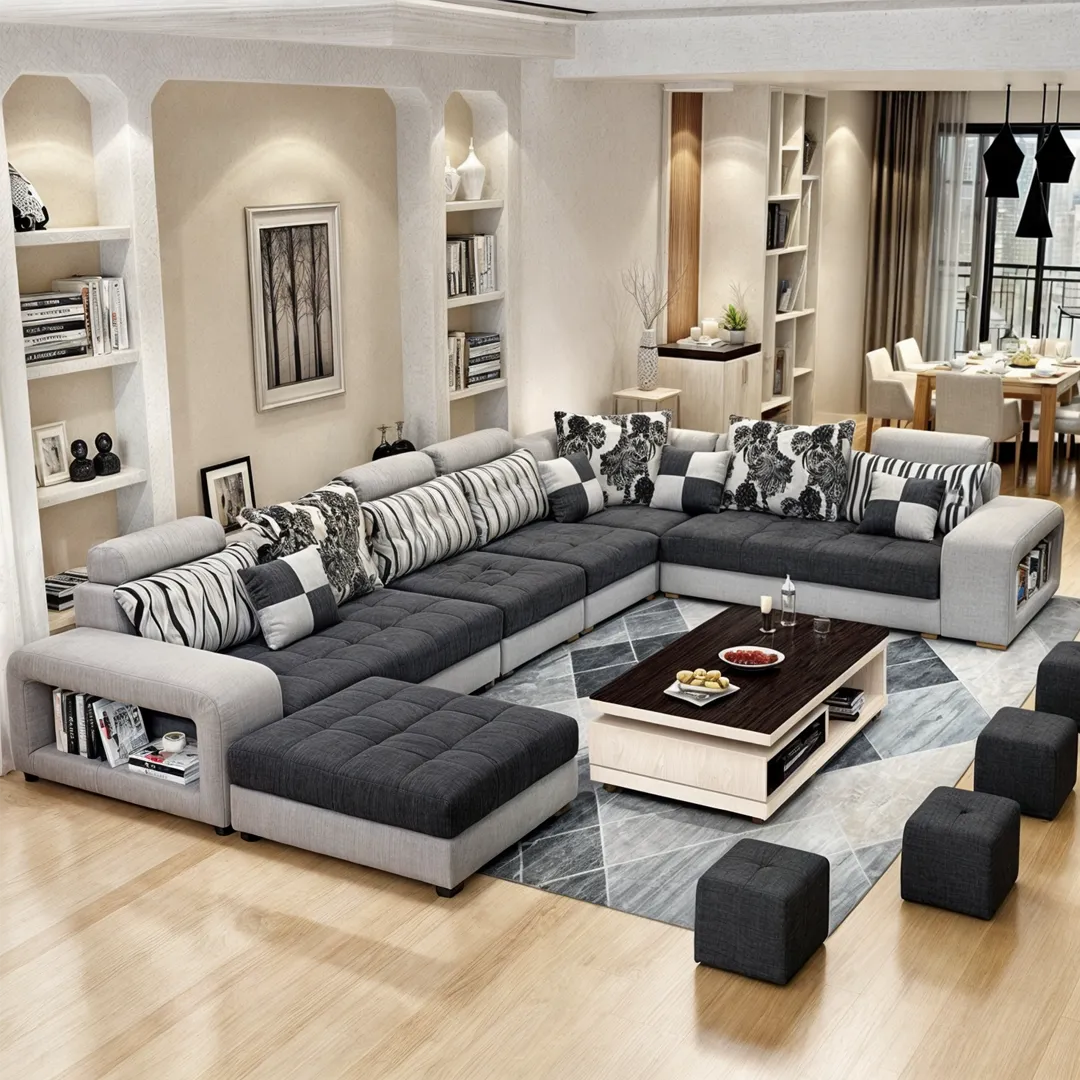 Sofá Modular Sevilla 6 piezas + Puff – Gris y Negro