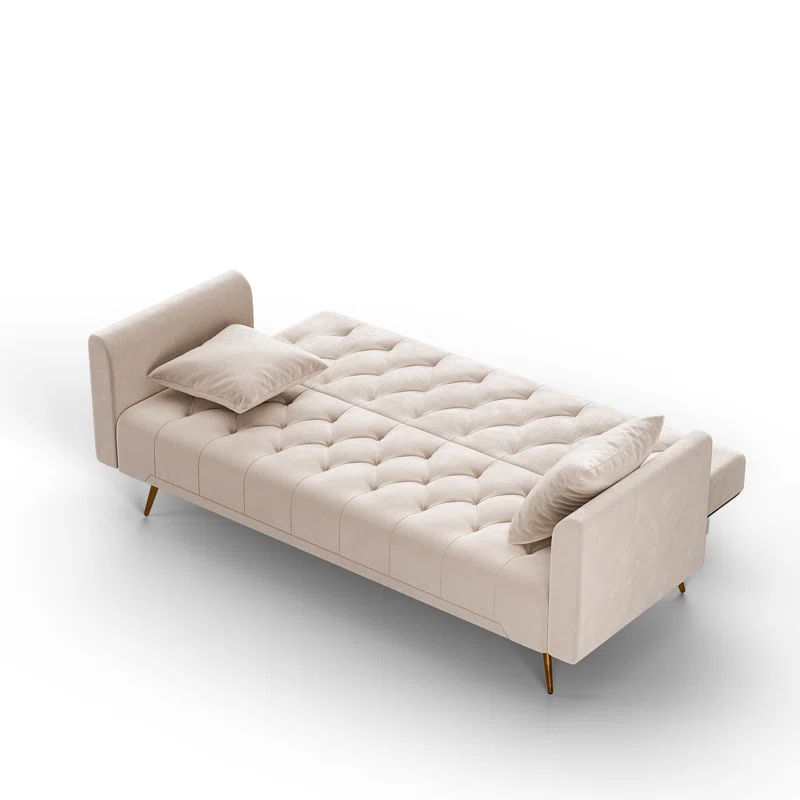 Este sofá cama destaca también por sus acabados modernos y detalles cuidadosamente elaborados, lo que lo hace adecuado para salas, estudios u otros ambientes. Es un mueble que combina funcionalidad, durabilidad y un diseño contemporáneo para satisfacer las nuevas
