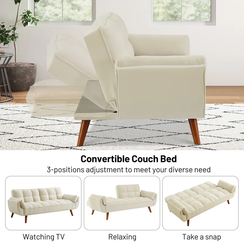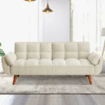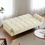 Este sofá cama destaca también por sus acabados modernos y detalles cuidadosamente elaborados, lo que lo hace adecuado para salas, estudios u otros ambientes. Es un mueble que combina funcionalidad, durabilidad y un diseño contemporáneo para satisfacer las nuevas