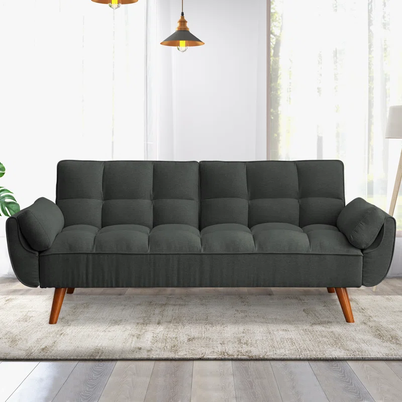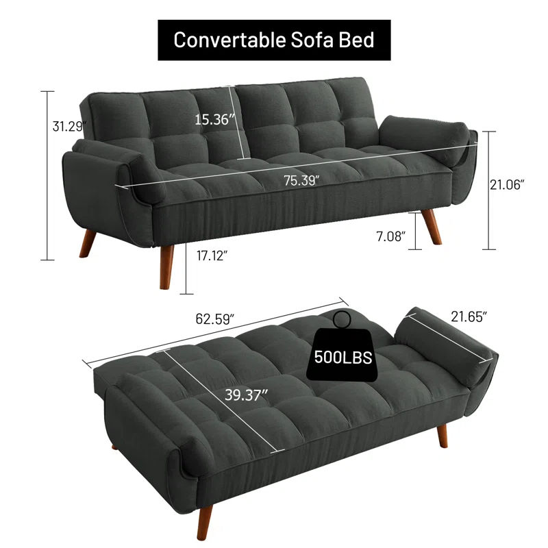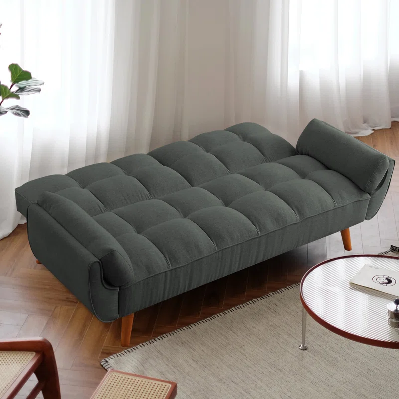 Este sofá cama destaca también por sus acabados modernos y detalles cuidadosamente elaborados, lo que lo hace adecuado para salas, estudios u otros ambientes. Es un mueble que combina funcionalidad, durabilidad y un diseño contemporáneo para satisfacer las nuevas