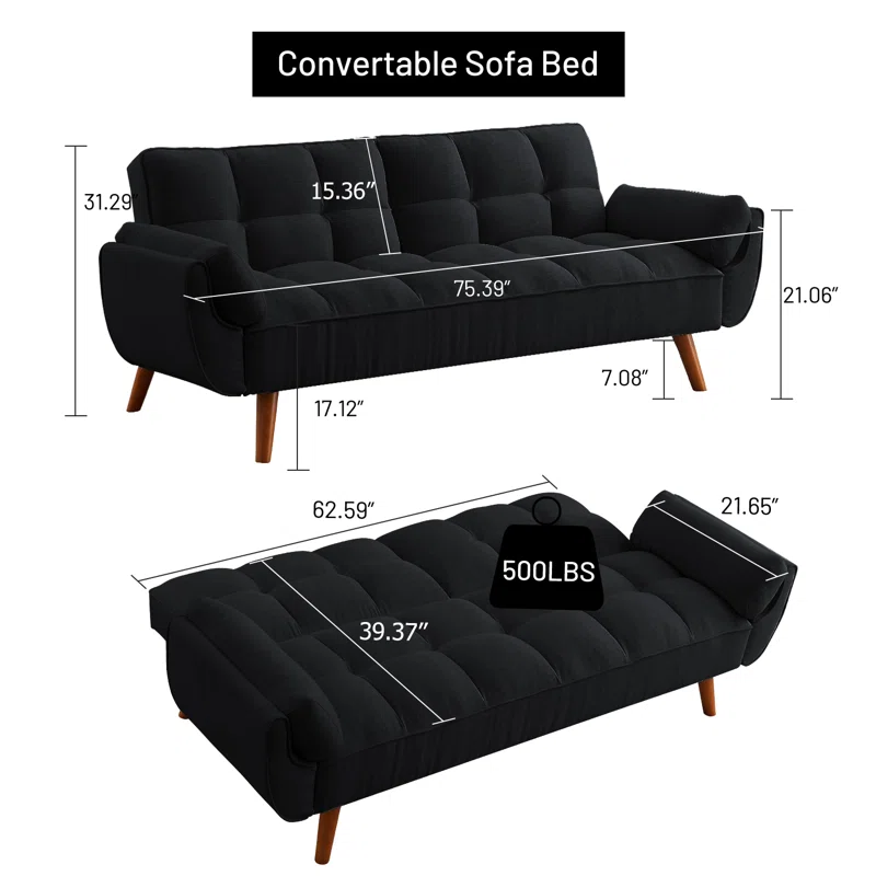 Este sofá cama destaca también por sus acabados modernos y detalles cuidadosamente elaborados, lo que lo hace adecuado para salas, estudios u otros ambientes. Es un mueble que combina funcionalidad, durabilidad y un diseño contemporáneo para satisfacer las nuevas