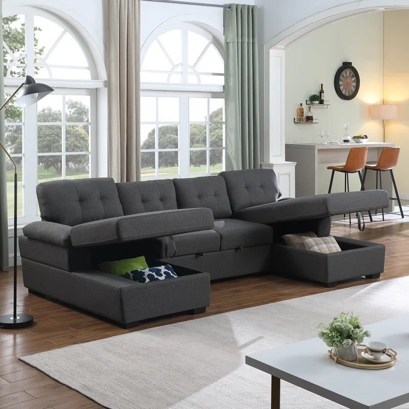Sofá Seccional Cama Marisol + Baúl 4 Cuerpos – Gris Oscuro