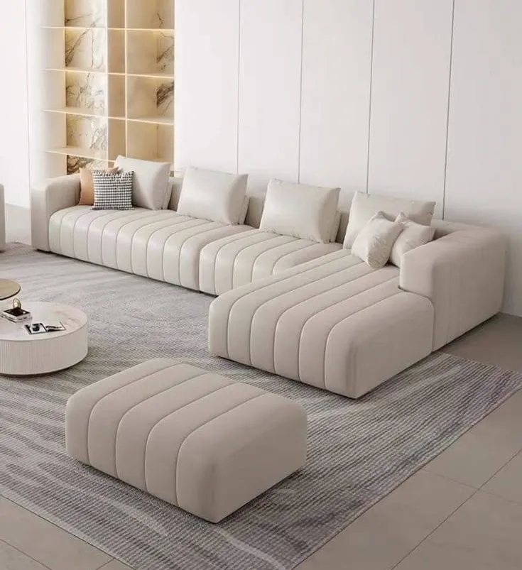 Sofa Seccional Jiangxi 3 Cuerpos + Puff – Ivory