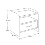 Velador decorativo de melamina de 18 mm de espesor con canto delgado en la estructura y canto grueso de 3 mm en las tapas. Con un diseño minimalista, añade un toque contemporáneo al dormitorio. Este velador es ideal para quienes buscan una estética sobria pero con espacio de almacenamiento.